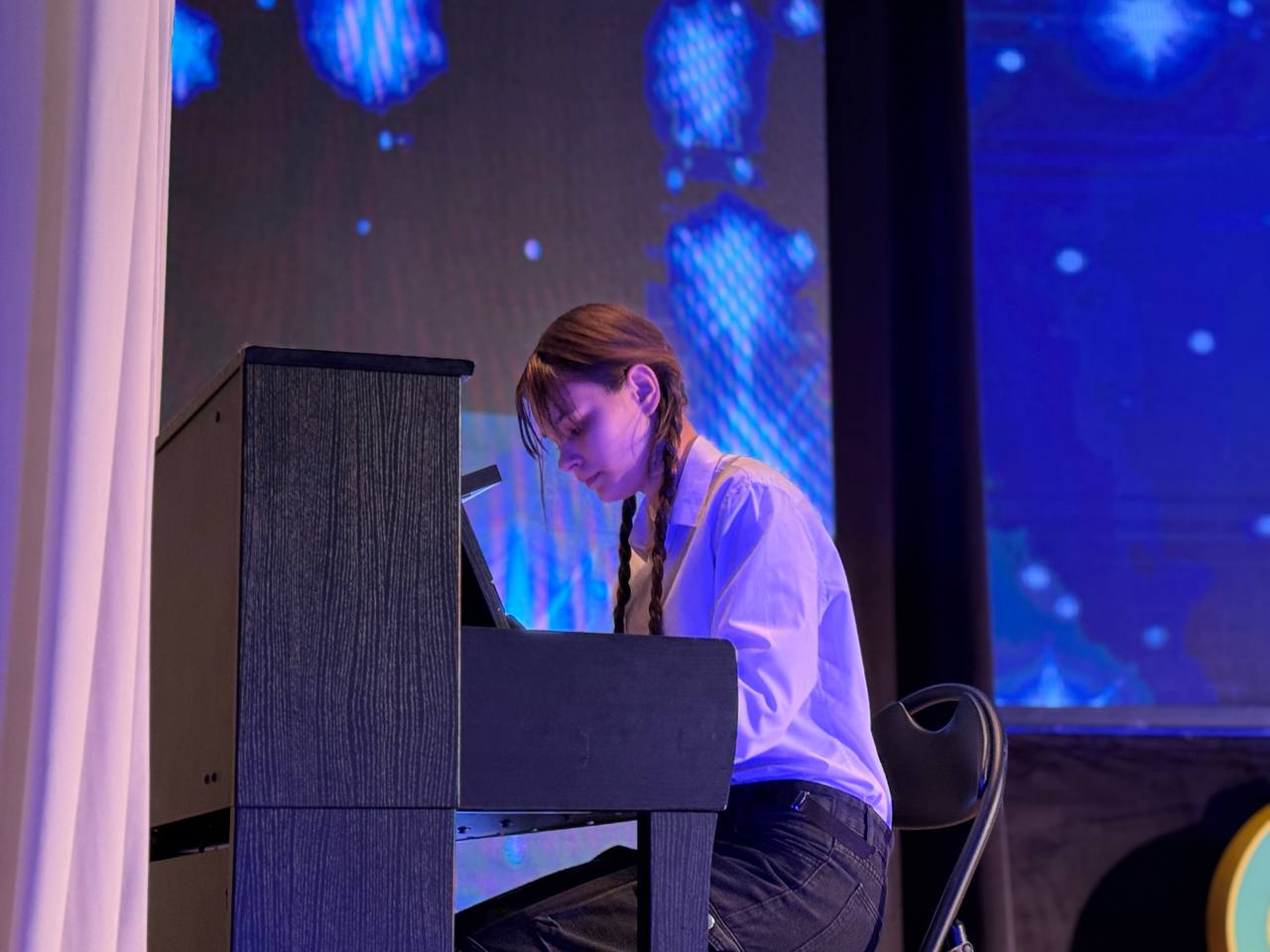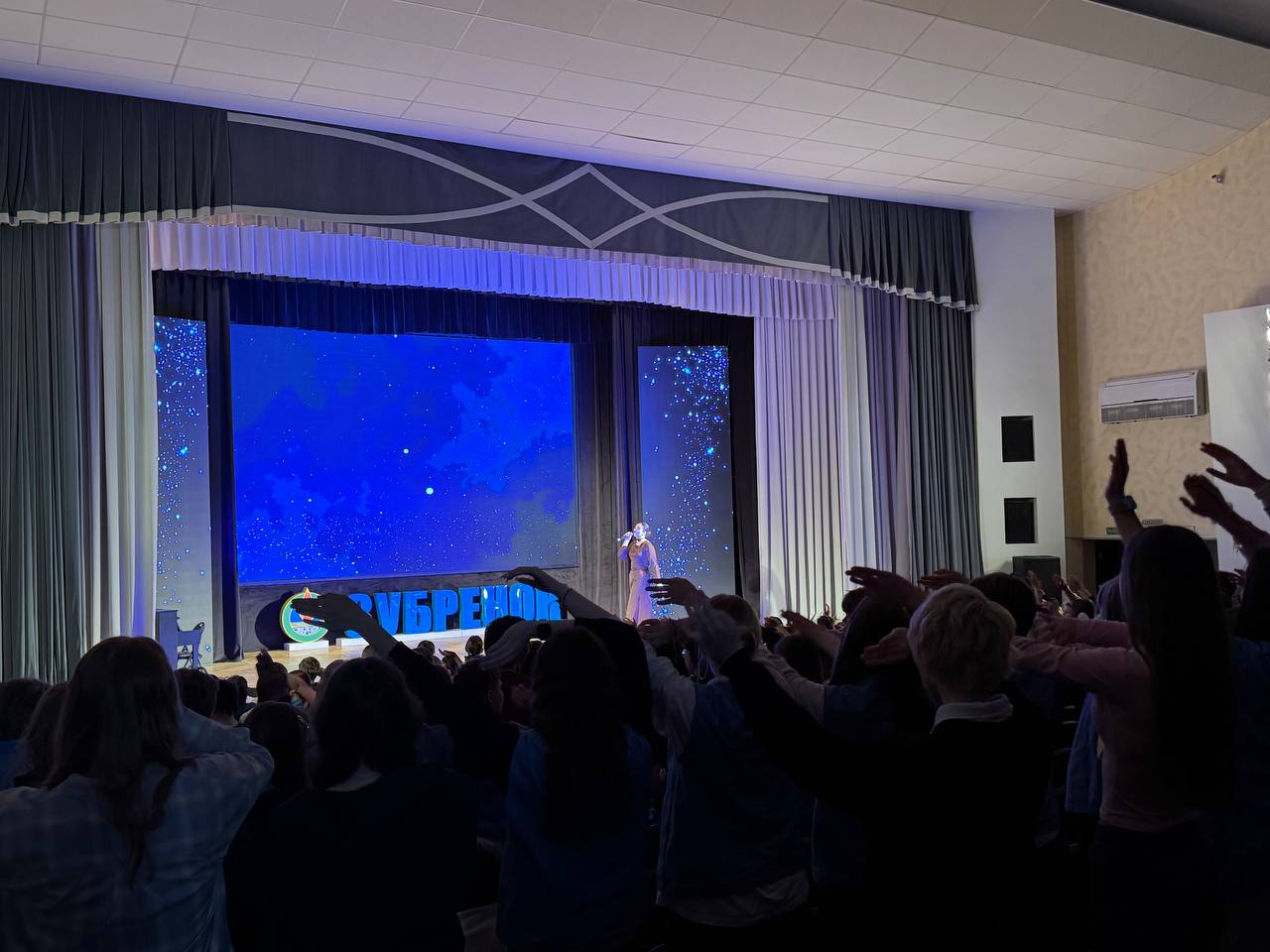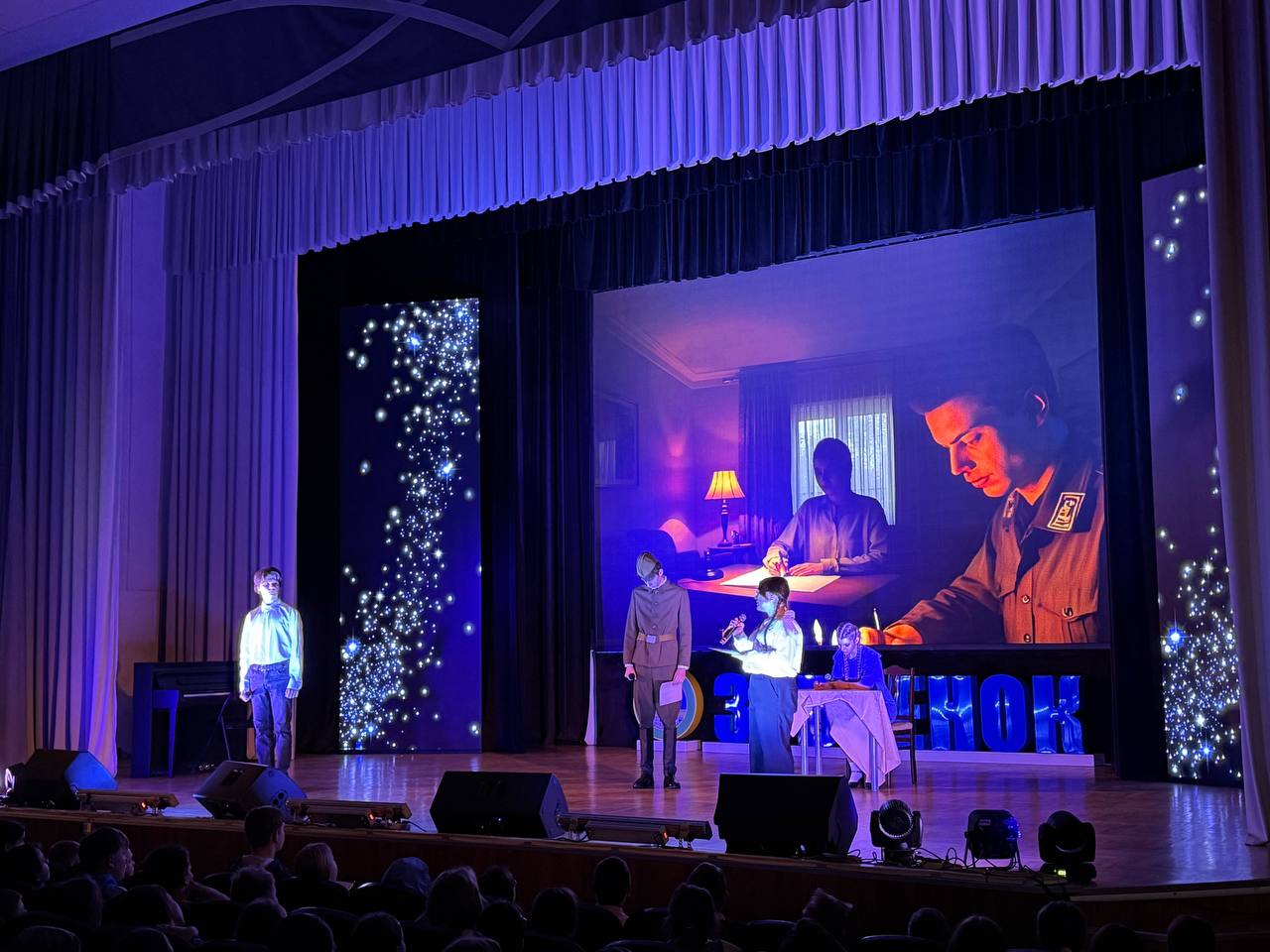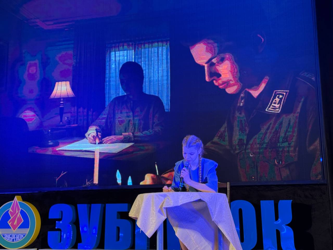 Девушки в народных платьях открыли мероприятие. Затем – письмо с фронта, от которого замер зал. А после ребята оживили карту страны: каждый регион предстал в женском образе: от стойкой матери до музы.