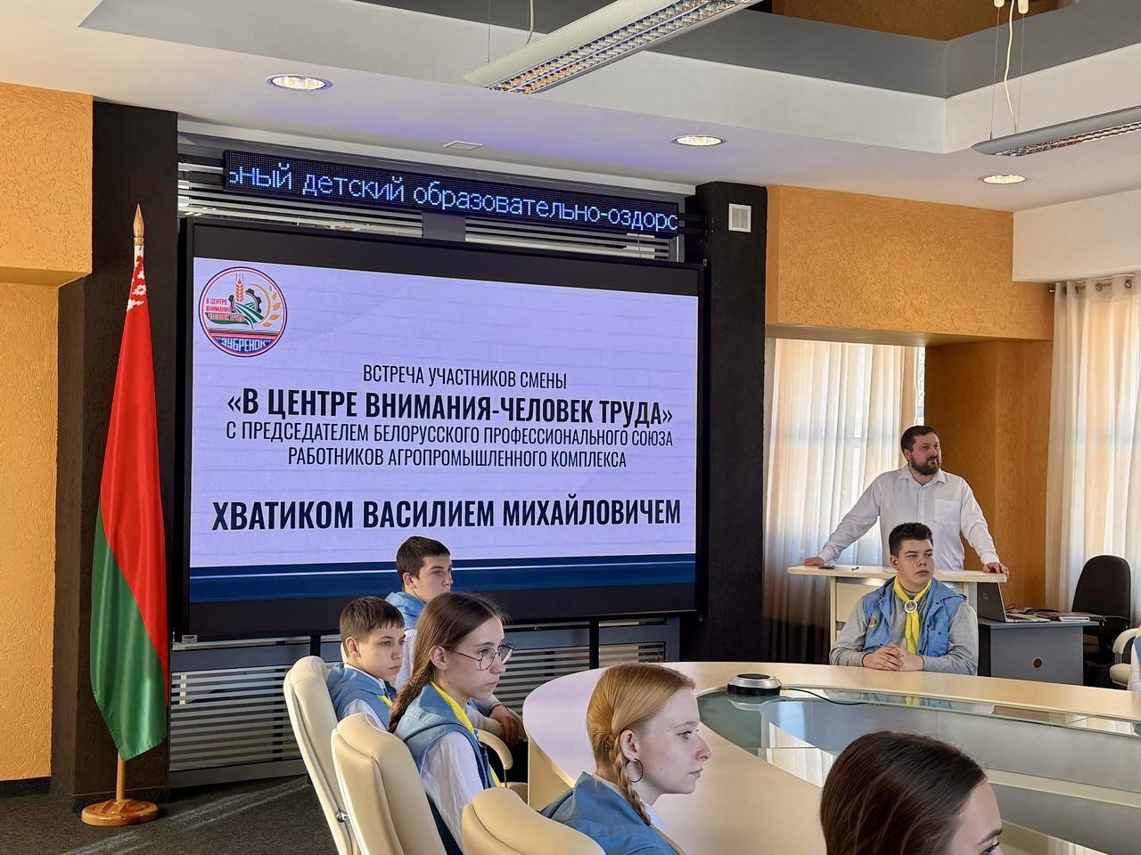 5 марта 2026 года в Национальном детском образовательно-оздоровительном центре «Зубренок» состоялась встреча воспитанников Центра с Василием Хватиком, Председателем Белорусского профессионального союза работников агропромышленного комплекса.