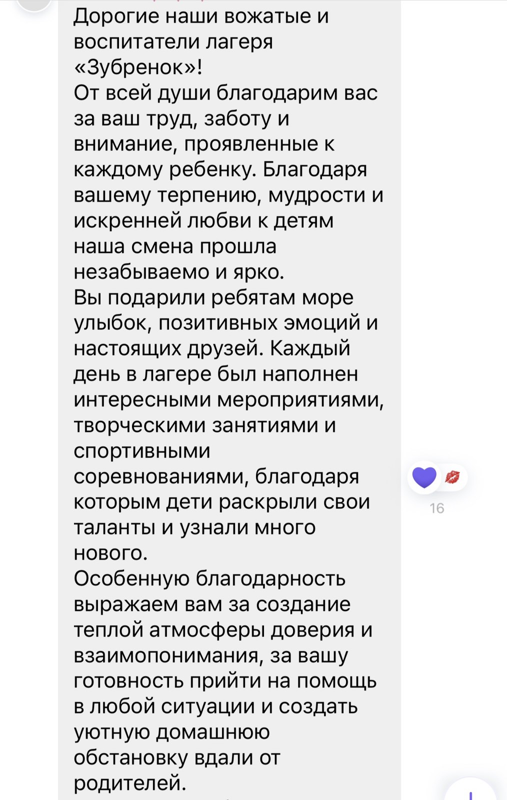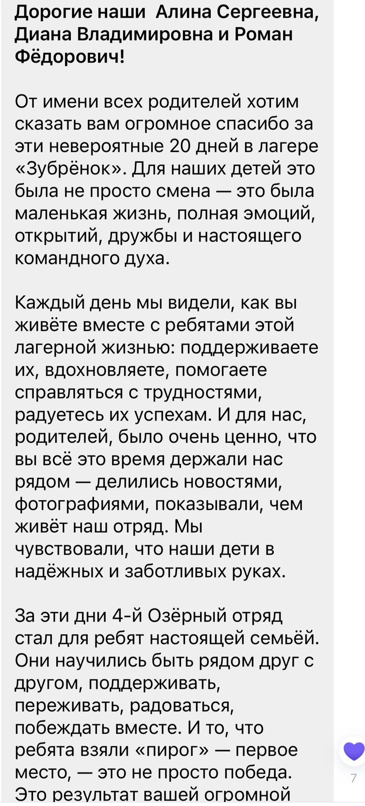 13 марта завершилась четвертая смена 2026 года в НДЦ «Зубренок». Ребята разъехалась, Центр наполнен подготовкой к следующей смене. В то же время мы получаем обратную связь от родителей зубрят.