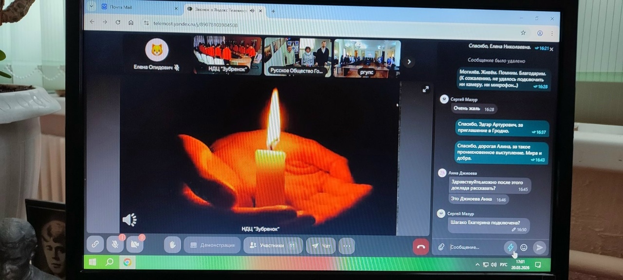 В своем выступлении, которое завершало мероприятие, зубрята уделили особое внимание вопросу сохранения исторической правды и передачи памяти. В конце телемоста белорусской молодежью была инициирована международная минута молчания, объединившая представителей разных культур. Пока мы помним, мы живем!