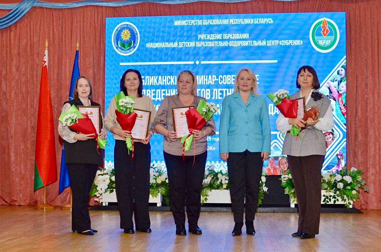 В номинациях «Новые модели организации детского отдыха «Сделаем лето ярче», «Лучший оздоровительный лагерь в организации гражданско-патриотического воспитания детей в лагере «Горжусь тобой, моя страна!», «Лучшая организация работы по реализации мероприятий Года благоустройства» было подано 37 проектов. Дипломами Министерства образования Республики Беларусь отмечены авторы 20 проектов, которым Екатерина Александровна Петруцкая, заместитель Министра образования Республики Беларусь, вручила награды.