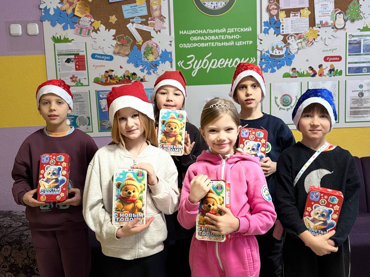 Первое утро Нового года в НДЦ «Зубренок» началось с подарков Дедушки Мороза, который успел заглянуть в каждый корпус, чтобы оставить там частичку праздника. По доброй традиции Дед Мороз приготовил для каждого воспитанника вкусное сладкое угощение.