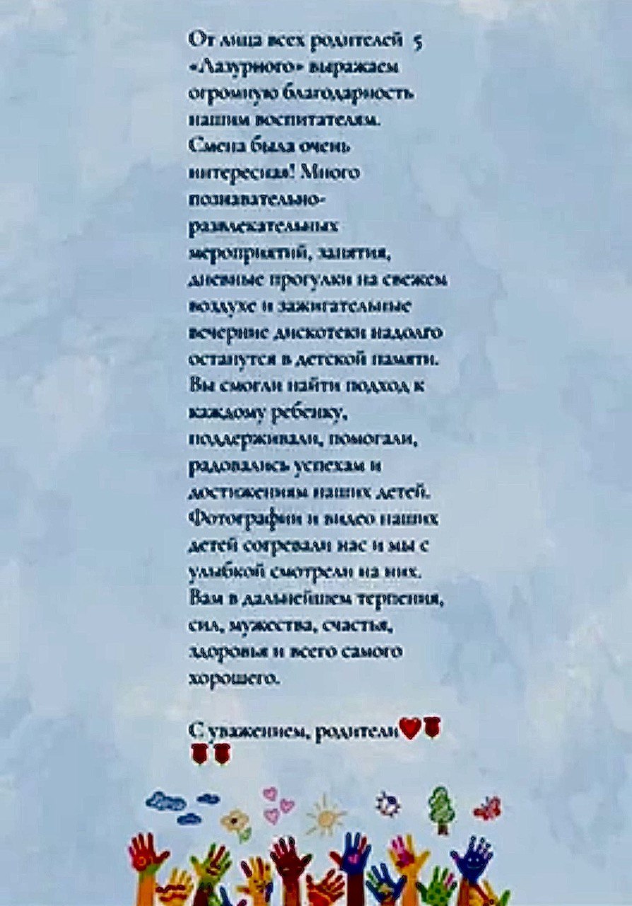 Благодарим всех откликнувшихся родителей за высказанное в чатах, телефонных звонках и анкетах мнение. Для нас каждое из них ценно и важно.