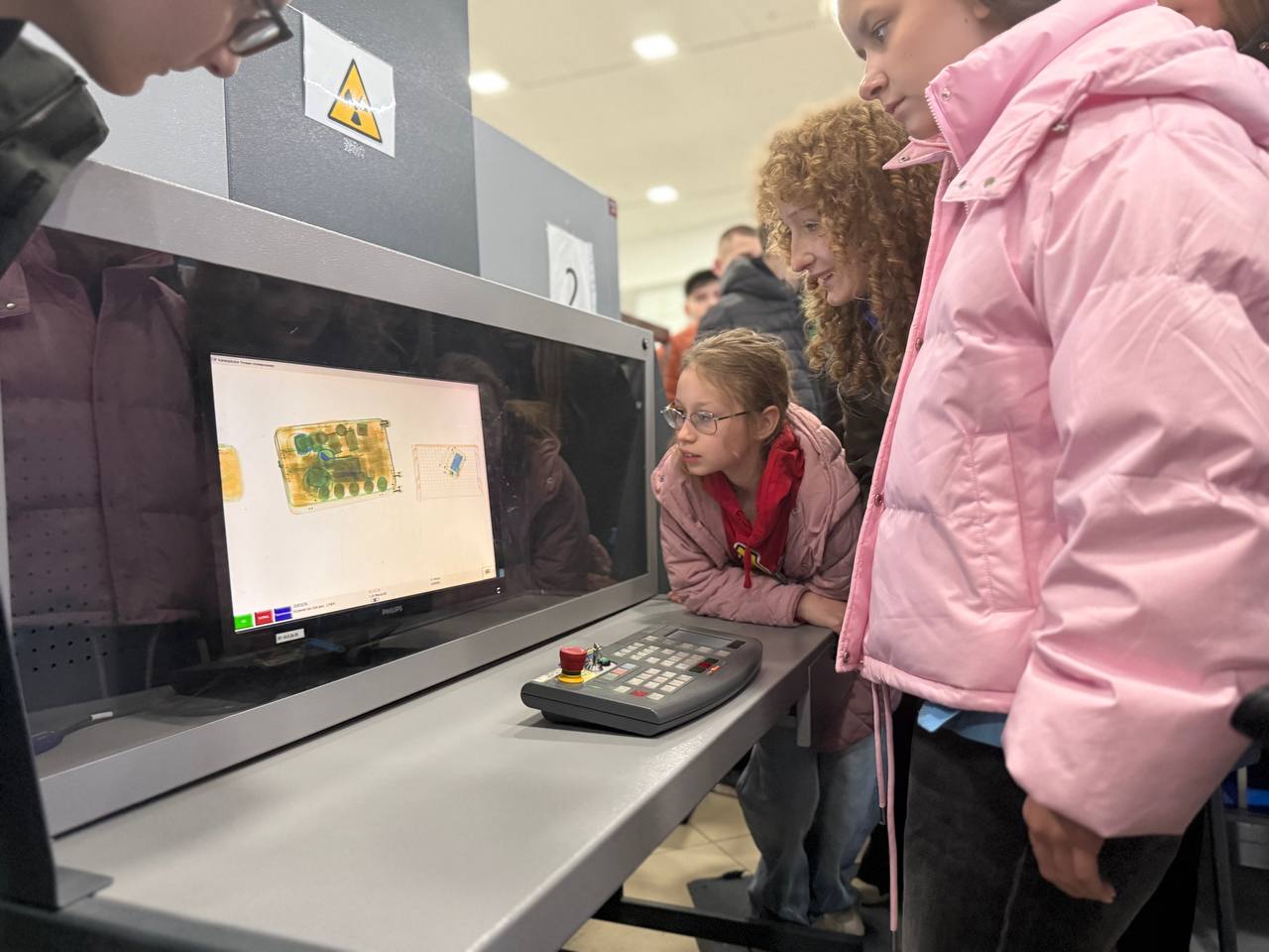 Воспитанники узнали об особенностях работы на таможенном посту аэропорта, как устроены пункты досмотра пассажиров, зоны таможенного контроля, комнаты для проведения личного досмотра.