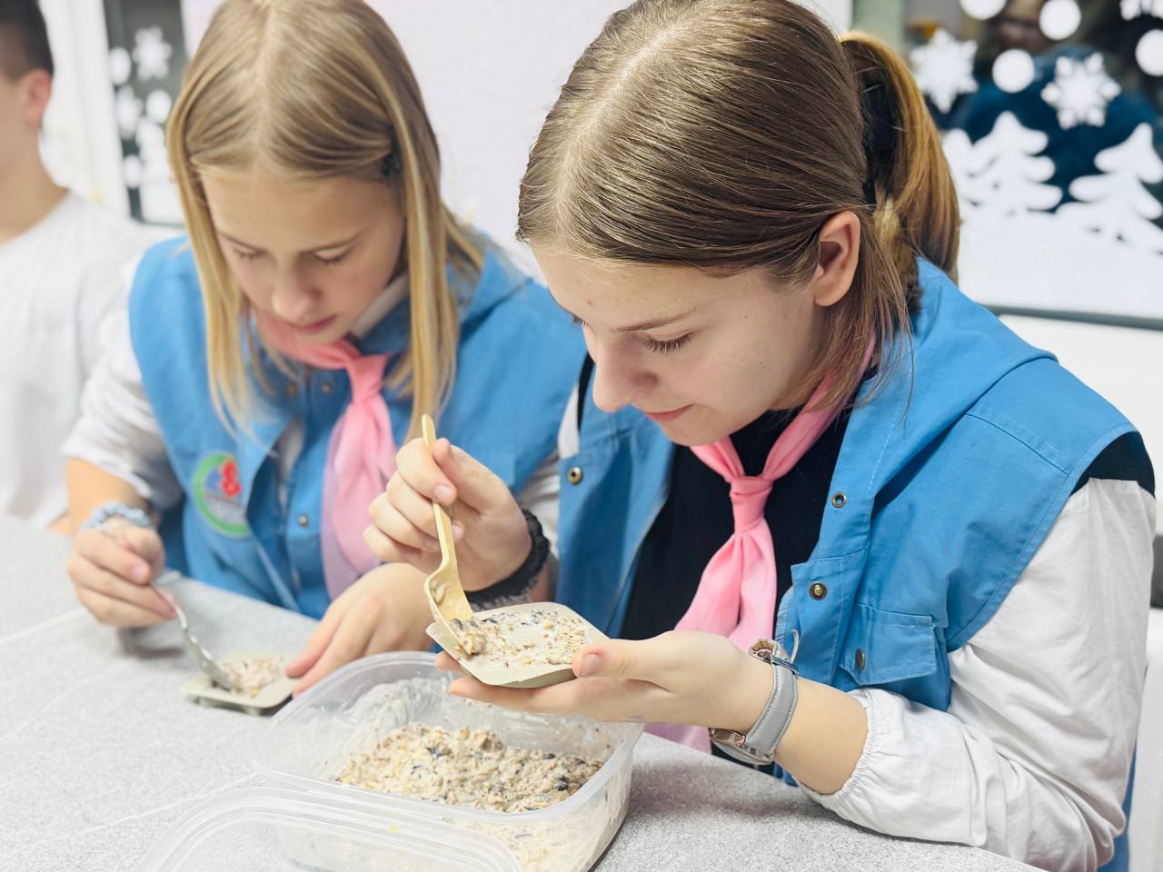Чем угостить пернатых друзей Национального парка «Нарочанский» в лютые морозы? Участники январской смены «Планета друзей» теперь знают ответ наверняка! 27 января 2026 года состоялся мастер-класс «Козинаки для пернатых», в ходе которого зубрята запомнили рецепт идеального зимнего лакомства для пернатых: специальное зерно+мука+желатин с водой=полезные экокозинаки. Данный мастер-класс показал, что забота о природе может быть не только вкусной, но и очень полезной. Теперь на деревьях появятся не просто кормушки, а целые «птичьи столовые» ручной работы