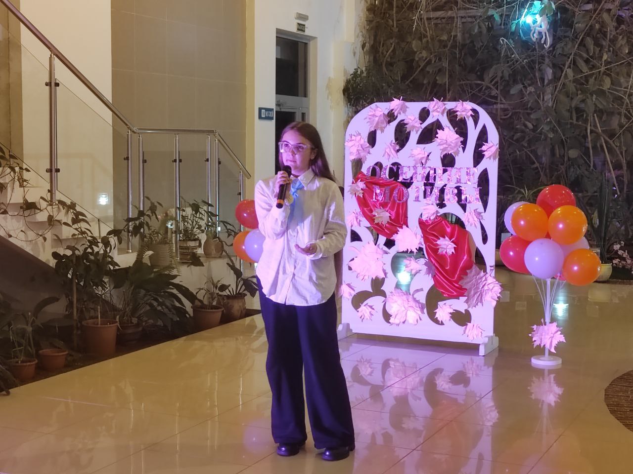 6 ноября 2025 года в зимнем саду дворца детского творчества прошел творческий вечер музыки и поэзии «Осенние мотивы». Зимний сад наполнился смехом, радостью, весельем, музыкой и встречей с прекрасным. Ребят ожидала встреча с чудесной осенней порой, с прекрасным миром поэзии и музыки. Все дружно вспоминали, что осень бывает разная.