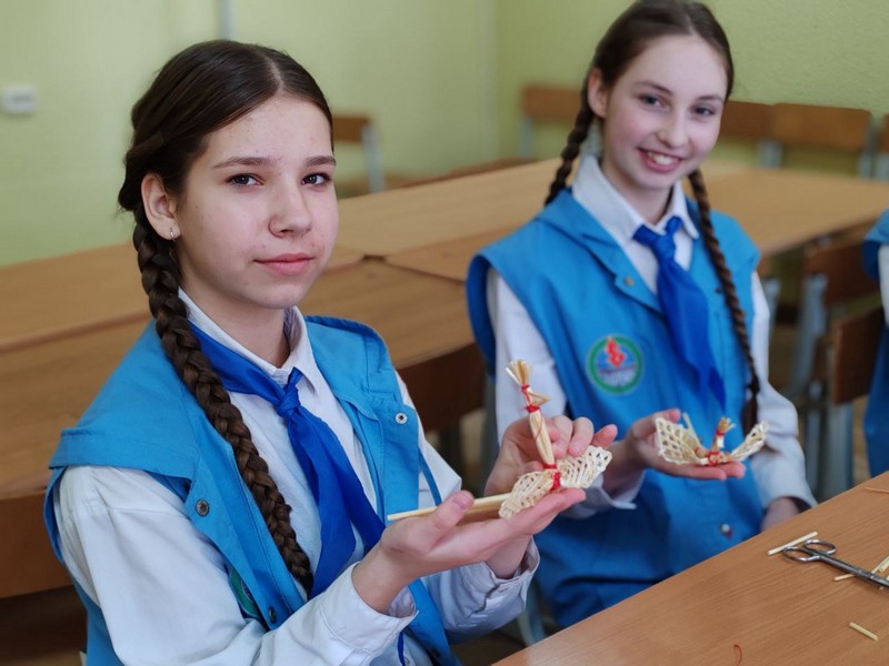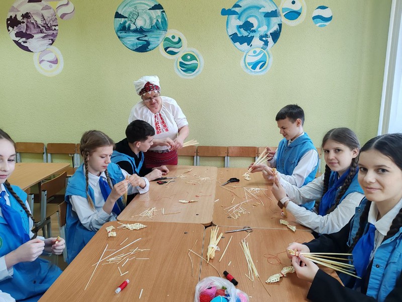 Символично, что зубрята в ходе третьего ШАГа «Мы действуем» у вочпитанников прошел мастер-класс по соломоплетению и изготовлению национальных поясов от народных мастеров Мядельщины: Грузд Людмилы Францевны и Карецкой Натальи Константиновны.