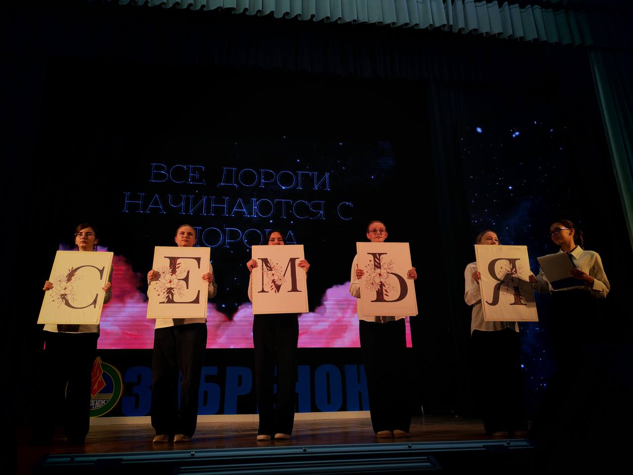 Программа мероприятия была насыщенной и трогательной. Школьники вместе с ведущими разбирали, какими словами и чувствами можно наполнить простое слово «СЕМЬЯ», рассказывали о семейных реликвиях из «чемодана ценностей» и делились мыслями о том, что значит крепкая семья для сильной Беларуси.
