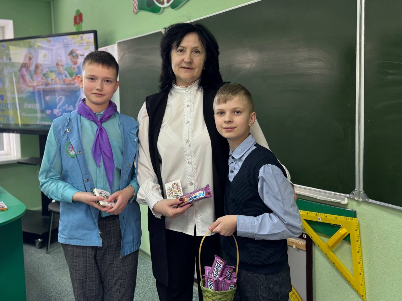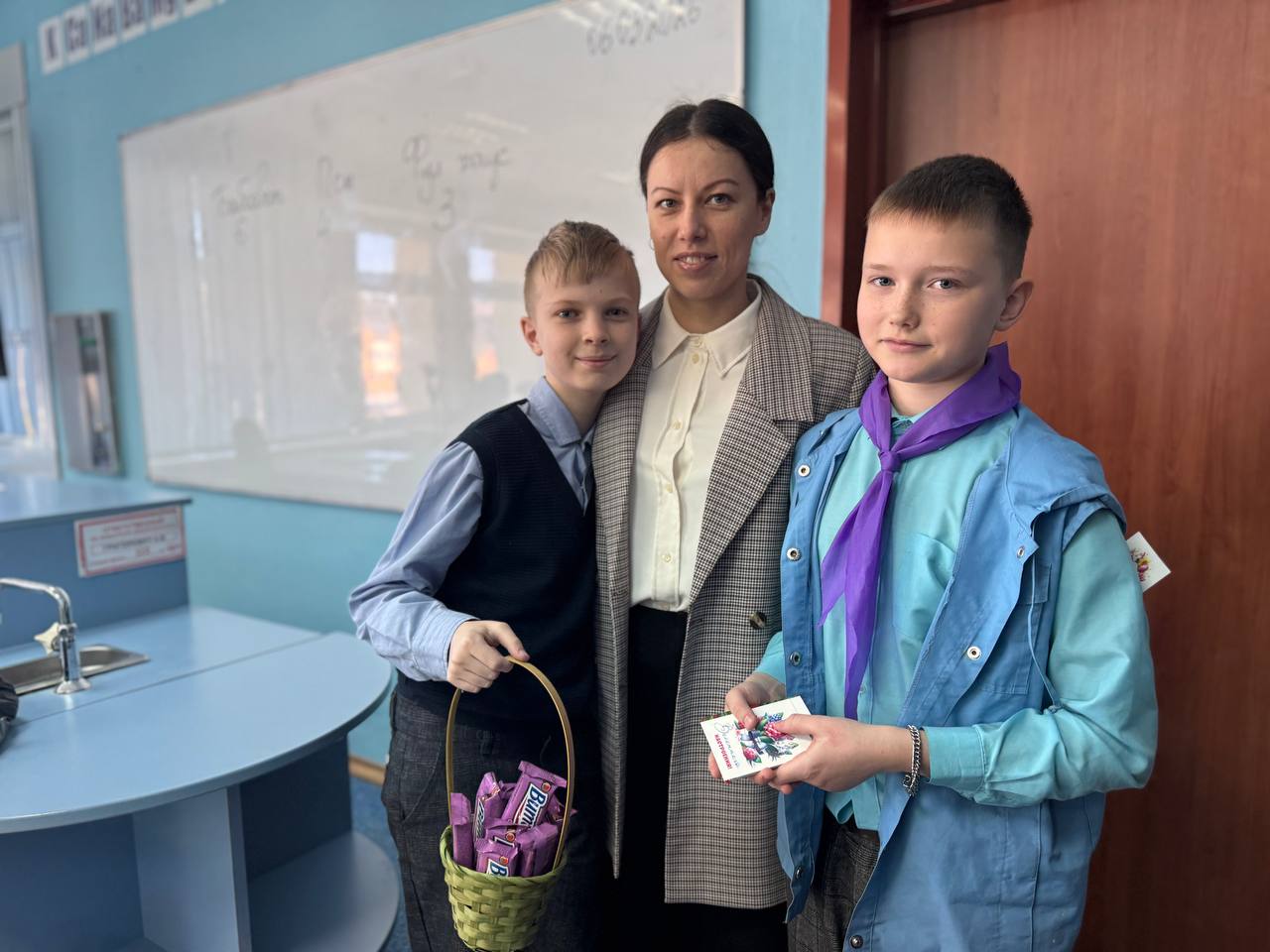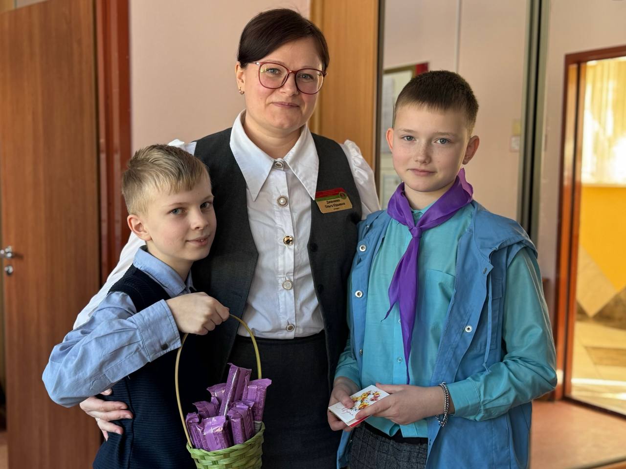 С самого утра в холлах школы было особенно многолюдно и шумно. Ребята из совета самоуправления, вооружившись яркими открытками и самыми искренними улыбками, поздравляли учителей.