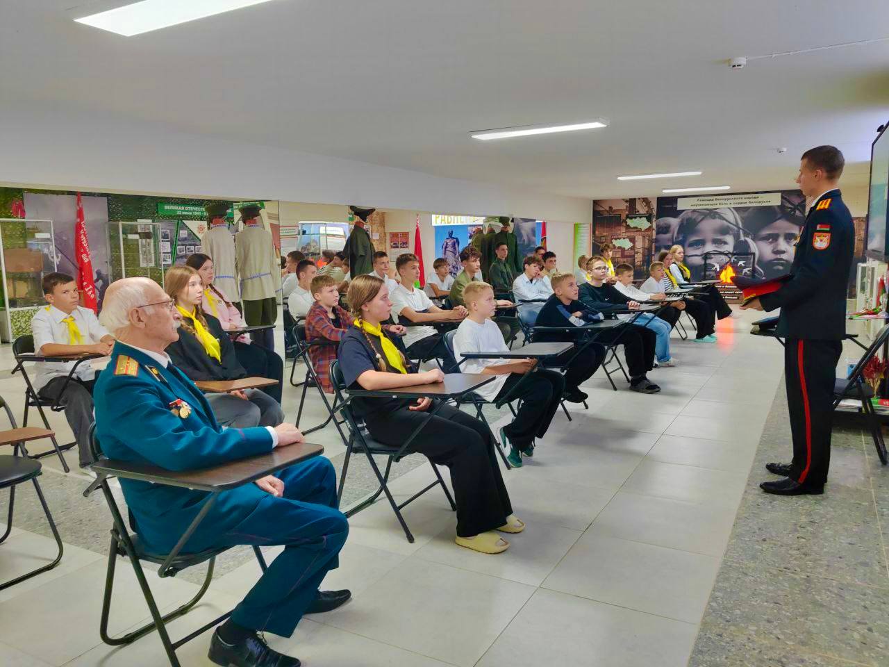Представители Полоцкого кадетского училища поделились личными воспоминаниями о служении Родине и примере гражданской ответственности, которая вдохновляет молодежь. Гостем мероприятия стал заслуженный ветеран труда Национальной киностудии «Беларусьфильм», член Мядельской РОО «Белорусский союз офицеров» Олег Иванович Сало.