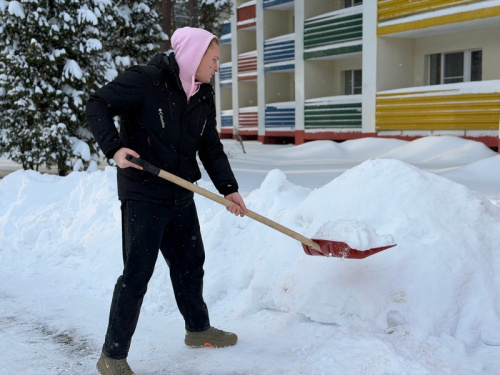 10 января 2026 года дружная команда сотрудников структурной единицы принялась за уборку снега на территории.
