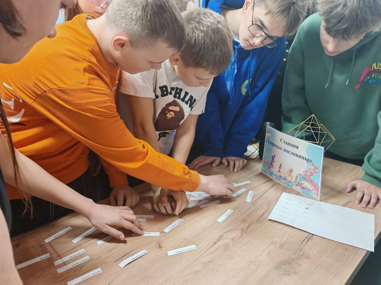 На станциях ребята отвечали на вопросы о здоровье, полезных и вредных привычках, правильном питании и физической активности. С помощью игры «Согласен — хлопни в ладоши» участники проявили отличные знания и сообразительность. Также ребятам собирали народные пословицы о здоровье из отдельных частей. Эта станция помогла вспомнить народную мудрость и осознать, что забота о здоровье была важна во все времена. Веселая разминка под музыку стала одной из самых ярких частей игры на станции «Фитнес–минутка»! Станция подарила всем заряд бодрости и отличного настроения.