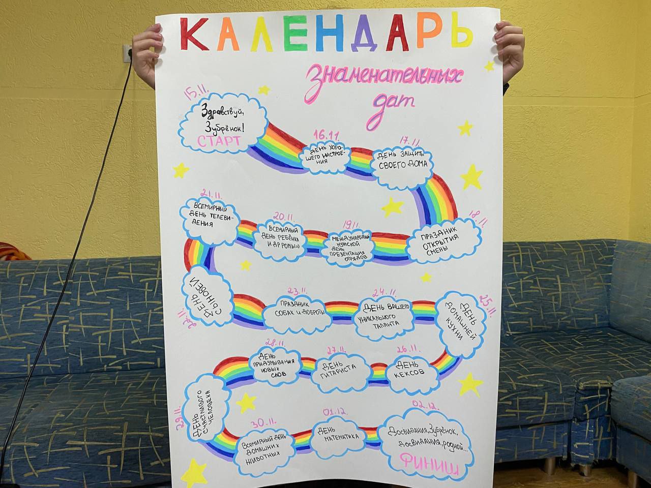 В НДЦ «Зубренок» время течет стремительно, наполняясь событиями, эмоциями и новыми впечатлениями. Чтобы запомнить эти мгновения и создать целостную картину прожитого вместе времени, воспитанники в течение смены ведут особый проект – «Календарь знаменательных дат».