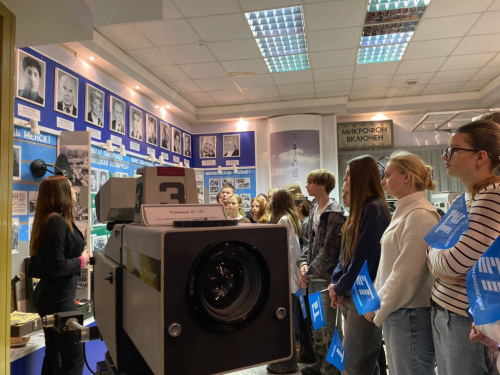 Ребята посетили музей, где им рассказали и показали, как выглядят первые камеры, телевизоры и аудиомагнитофоны. После воспитанников отвели в самую большую студию Белтелерадиокомпании – «шестисотку».