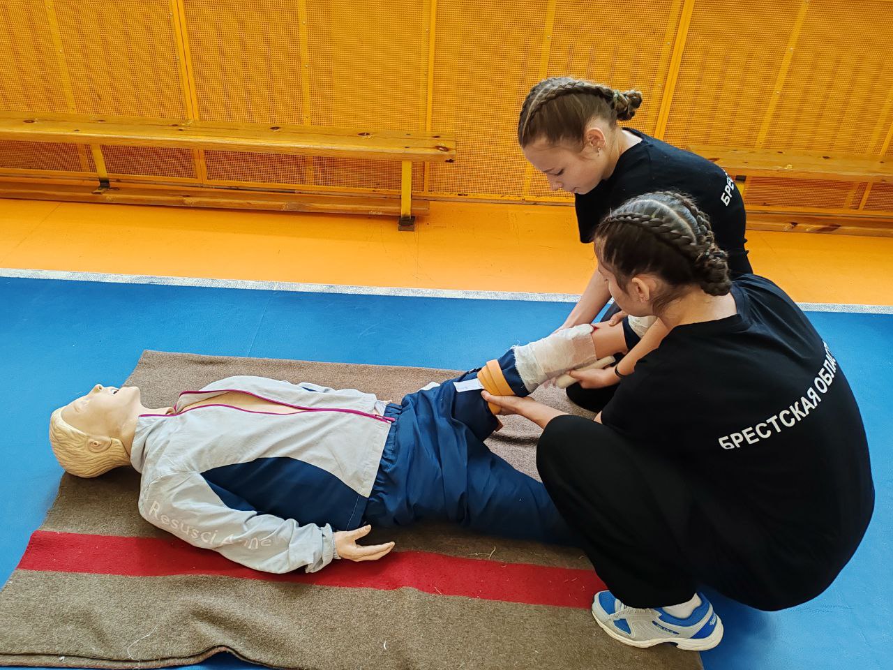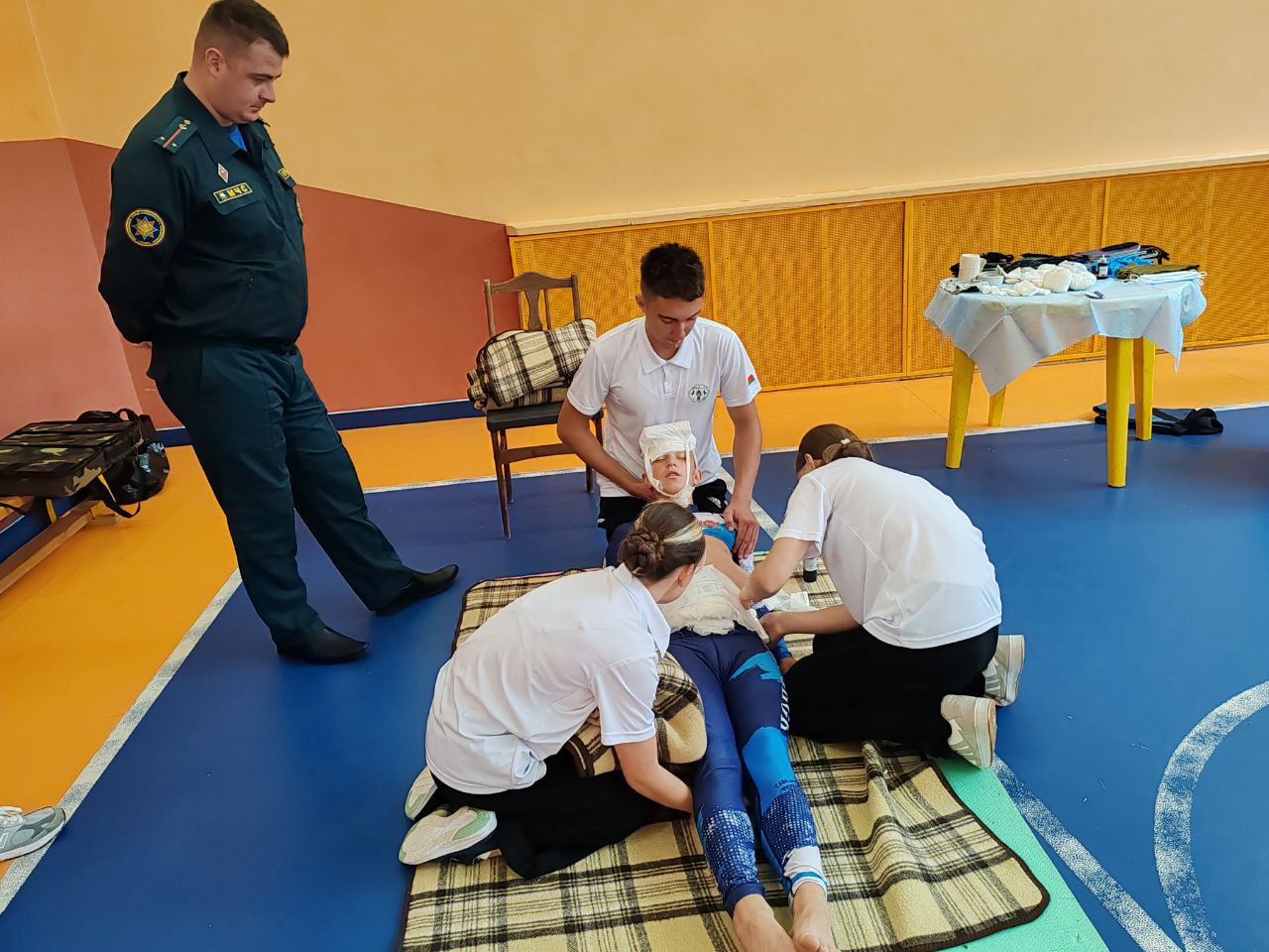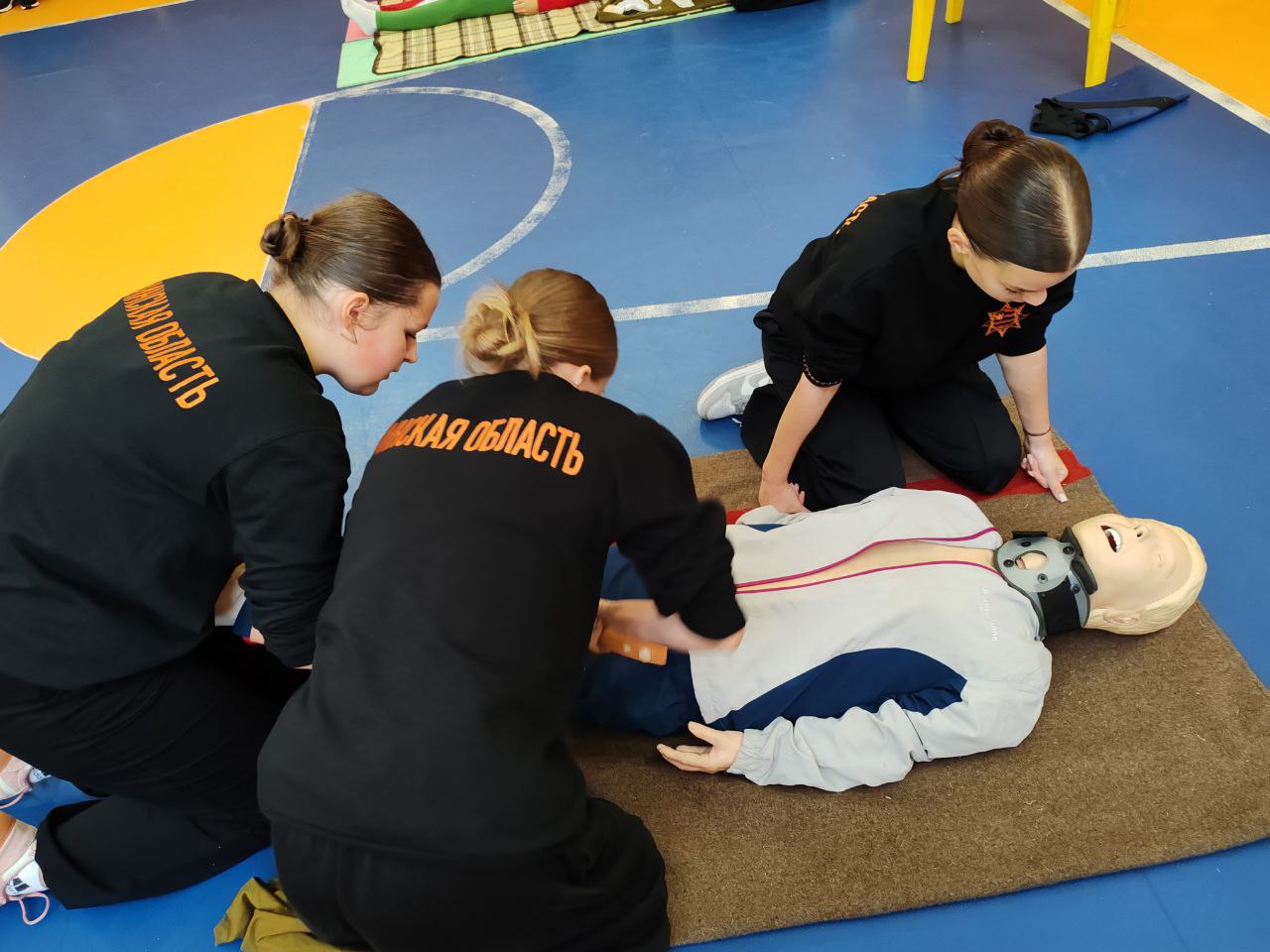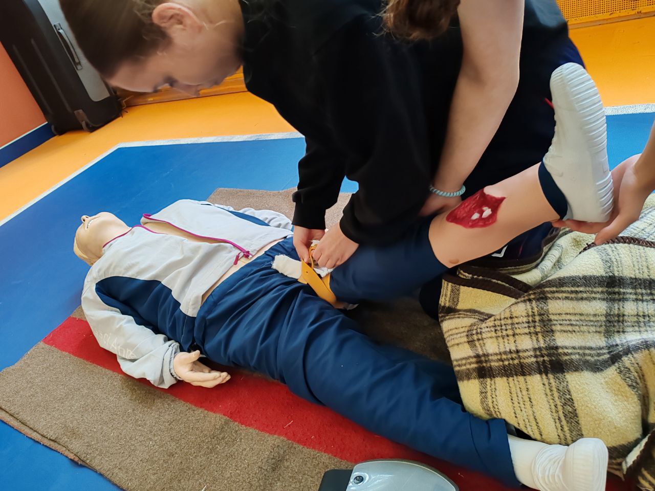 Ребята должны были сориентироваться в ситуациях, когда человеку необходима сердечно-легочная реанимация или если он впал в кому, останавливали «кровотечение», накладывали повязку, спасали «подавившегося ребенка» и транспортировали пострадавшего на носилках.