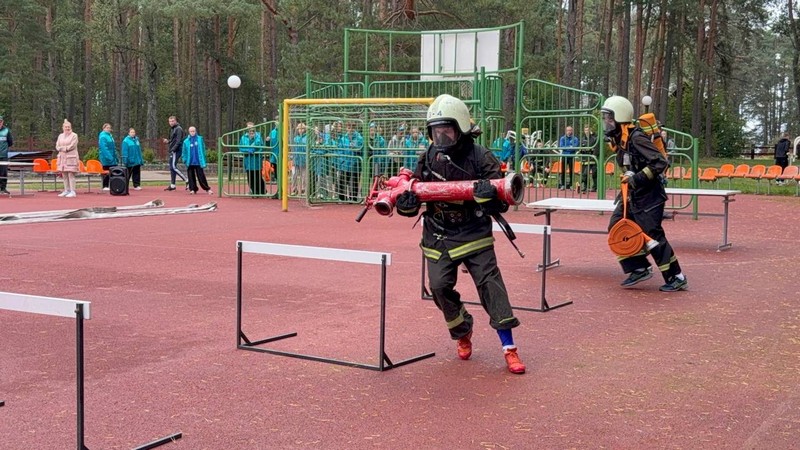 Утро субботы для юных спасателей в НДЦ «Зубренок» началось очень активно – ребята преодолевали этап «Пожарный кроссфит».