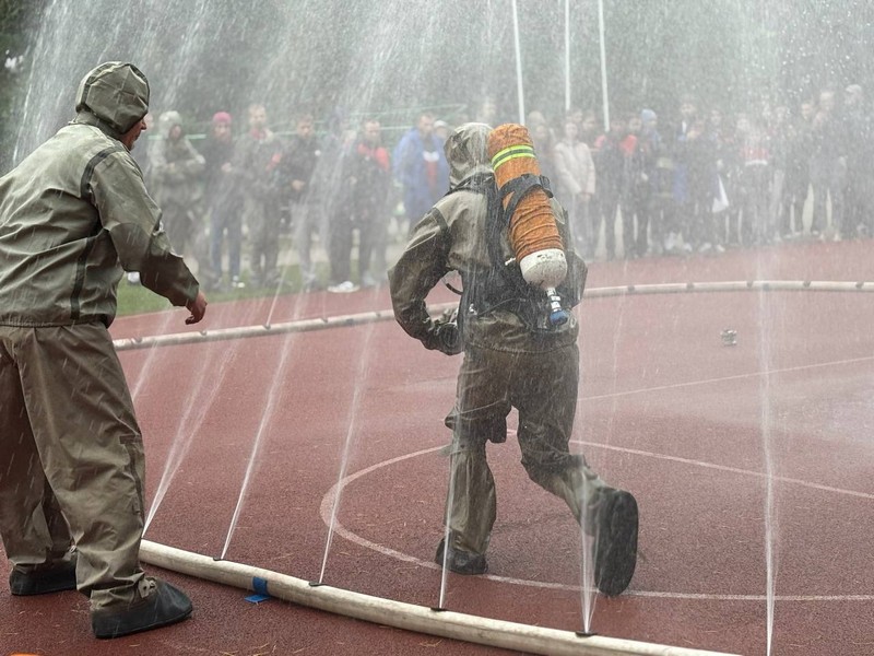 Суть состязания заключалась в следующем. Каждому из пятерых отобранных командой участников требовалось пройти определенный этап эстафеты: смотать пожарные рукава, пробегая выделенную дистанцию, преодолеть полосу препятствий из легкоатлетических барьеров и автомобильных покрышек, чтобы соединить пожарные рукава, переместить покрышки после преодоления забора, а после соединить переходные головки и пробежать с ними к финишной прямой. Обязательное условие – выполнение элементов в полной боевой экипировке спасателей.