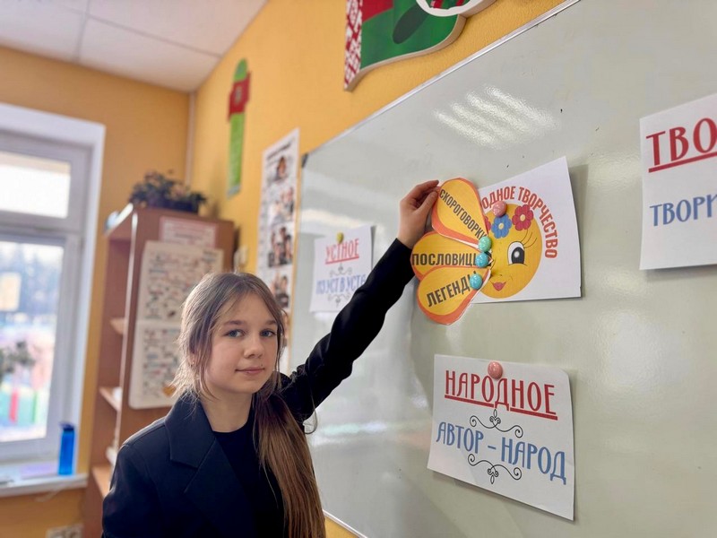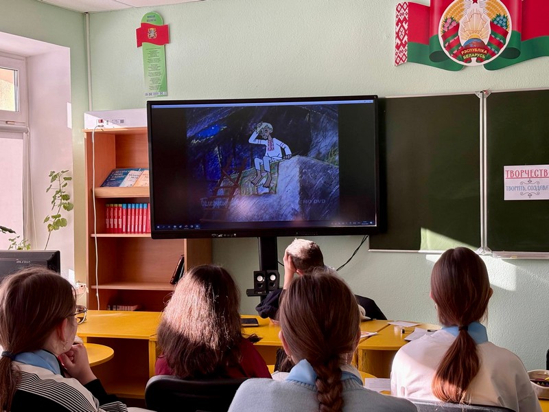 Кульминацией занятия стало погружение в мир белорусской сказки. Ребята посмотрели и обсудили историю про смышленого бедняка Нестерку, который нашел необычный клад. А потом в процессе обсуждения дети не только вспоминали сюжет, но и объясняли значения выражений, рассуждали о поступках героя, а самые смелые даже предлагали альтернативные концовки и придумывали продолжение истории.