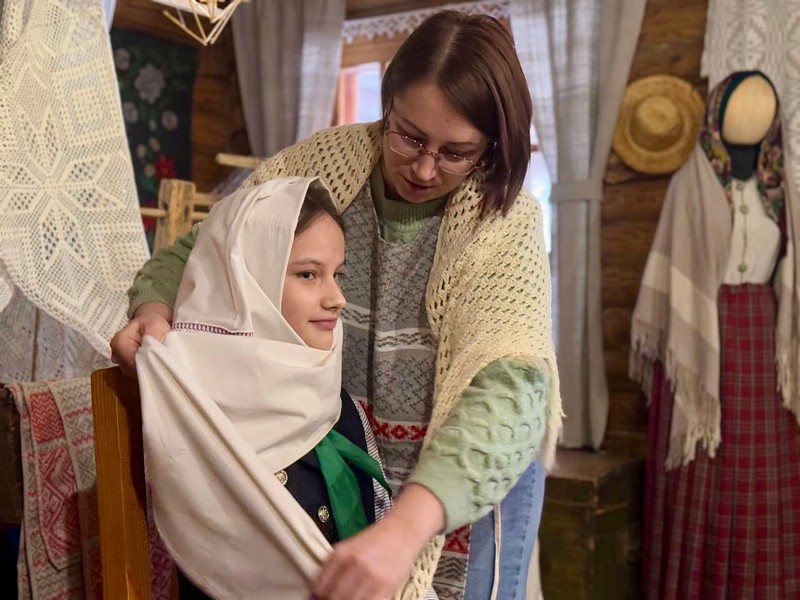 На территории центра была воссоздана подлинная атмосфера белорусской деревни: от уютной избы до старинных орудий труда – каждая деталь словно переносила ребят в прошлое. Воспитанники не только осмотрели экспозиции, но и стали активными участниками интерактивного занятия «История и традиции рушника». Это занятие позволило им глубже понять значение рушника в белорусской культуре и прикоснуться к традициям, которые передаются из поколения в поколение.
